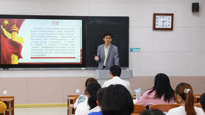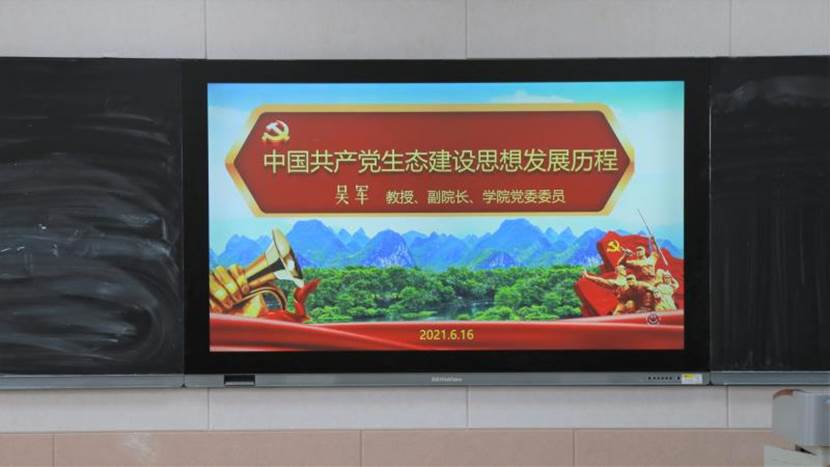 党委委员、副院长吴军教授给2020级地理科学(师范)3班和4班同学讲授《中国共产党生态建设思想发展历程》的党课。