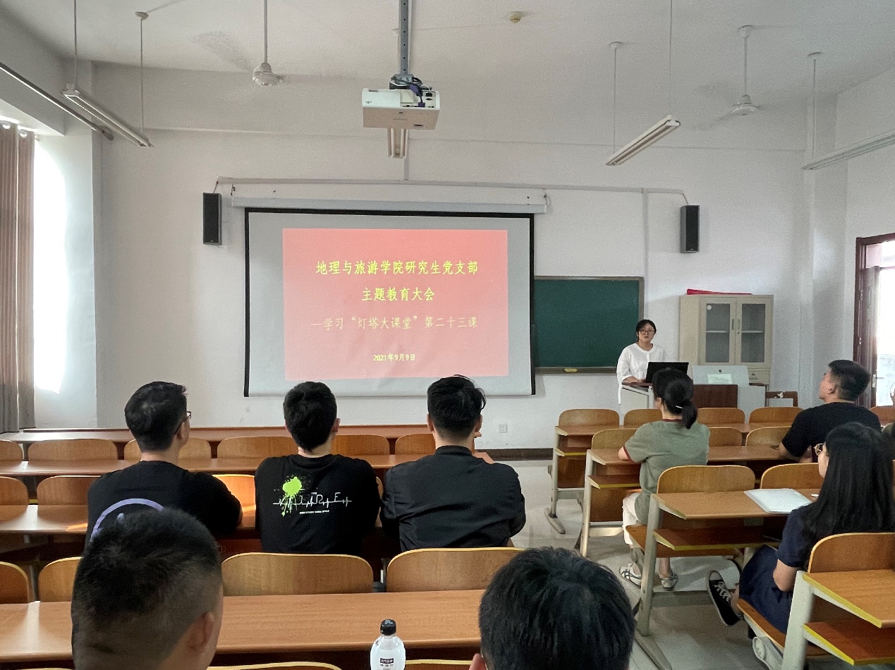 研究生党支部于S楼411教室开展主题党日活动,专题学习“灯塔大课堂”第二十三课。本次活动由研究生党支部组织委员马振秀主持,研究生党支部全体成员参加。