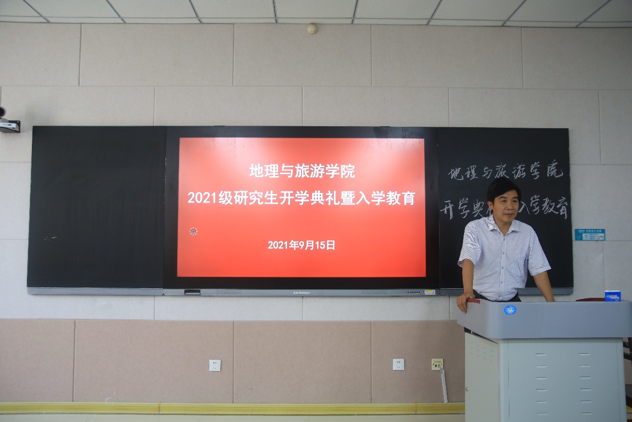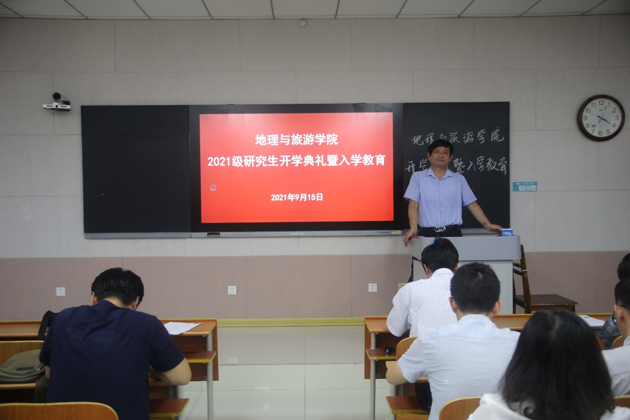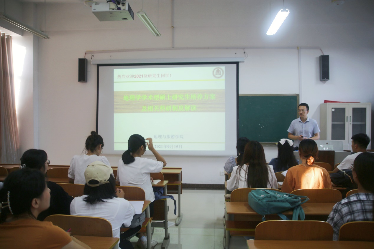 历史沿革、学科建设、教学成果、办学特色、师资力量、社会贡献等基本情况。张院长叮嘱同学们一定要围绕学院“一体两翼、三点四面”的学科发展背景,找准研究方向,树立培养工作能力、学好专业知识、塑造健康身体的三大目标。他强调,研究生要明确学习目标,培养自学意识、能力意识、创新意识、安全意识,树立科学的情感态度价值观,树立底线意识、纪律意识,爱惜学校和学院荣誉,期待同学们成长为一名优秀的地理学者、地理教育工作者。