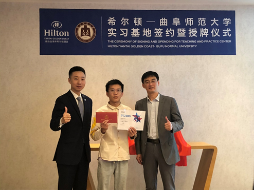 随后,吴军副院长一行与总经理白亮、人力资源总监韩玉巧等酒店高管等围绕实习合作、学生实习培训和配套、校企合作育人和实习过程安全等问题进行了广泛交流,并共同为月度优秀实习生靳文奥颁发了奖励证书和奖金,为教学实习基地揭牌。