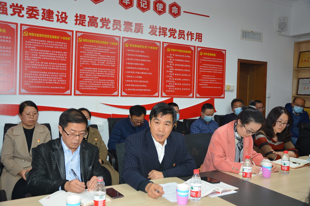 院长张全景以一名普通党员身份介绍了学院“山东省高校黄大年式教师团队”建设情况。张全景指出,近年来,团队以黄大年同志为榜样,通过坚守师魂、立德树人,以本为本、守正创新,打造学科高地、产出精品成果,服务社会发展、助力乡村振兴等系统性工程建设,形成了“党建+业务”的师德师风建设模式,团队成员和广大教师政治立场坚定,专业特色鲜明,业务能力突出。张全景表示,多年来,团队按照“三个牢固树立”“四有好老师”、“四个引路人”和“四个相统一”的标准,自觉锤炼爱国情怀、敬业精神和高尚情操,已成长为一支“站得住讲台、做得了研究、守得住师魂”的高素质专业化教师队伍。张全景强调,团队将进一步总结推广“师德教育为先导、教书育人为中心、培养人才为己任”的成功经验,积极发挥模范引领作用,继续弘扬黄大年精神,铸造奉献敬业团队,推动全院形成优良师德师风的新局面。