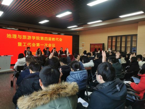 大会在雄壮的国歌声中拉开序幕。会议选举通过新一届分工会委员会,审议并通过了张全景同志所作《锲而不舍 勇攀高峰 开创曲园地理新天地》的学院工作报告,审议并通过了石峰同志所做的学院分工会工作报告。