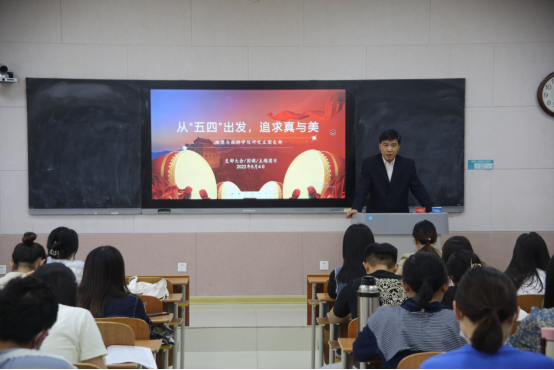 会上,苏占兵就“五四”运动的内涵、主题和意义展开了深入浅出的讲解,他指出,“五四”是政治的“五四”,是文化的“五四”、经济的“五四”、社会的“五四”,“五四”不仅是一次救亡图存的爱国运动,而是一个时代,代表着近代中国一次激烈的思想碰撞,涌现了蔡元培、陈独秀、李大钊等一系列优秀的新青年,在中国近代史上具有重要地位。苏书记通俗易懂的话语使同学们对“五四”运动有了更为深刻而正确的认识。随后,苏书记结合自身工作实际,详细地阐述了“五四”运动的重要意义,着重强调“五四”运动在追寻真与美的道路上做出的探索,并勉励同学们要努力学习,肩负起新时代青年的使命和担当,在追求真善美的道路上继续发光发热,为伟大中国梦的实现贡献自己的青春力量。