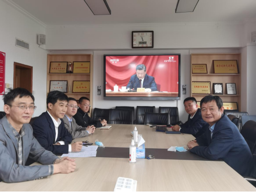 党委委员苏占兵、张全景、刘伟、吴军、于伟、刘志刚,重点建设办公室主任李宝富,教授代表廉丽姝、荆延德、孙小银、徐刚、贺山峰等在党员活动室集体观看了大会直播。