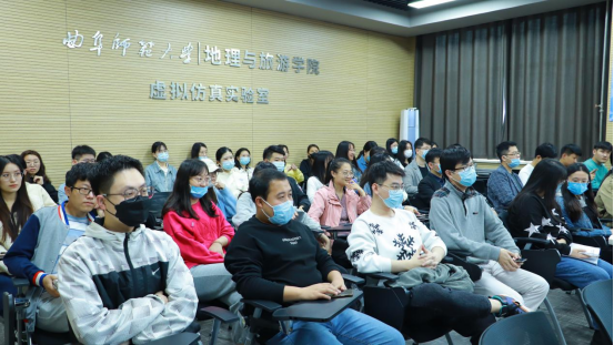 研究生党员与团员代表在学院虚拟仿真实验室共同观看大会直播盛况。