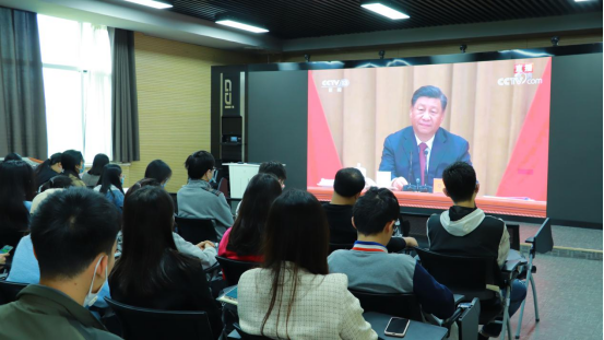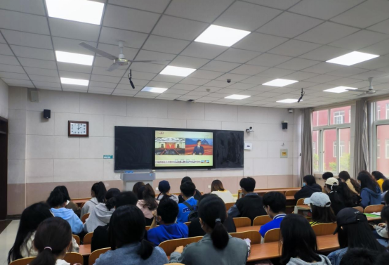 团委书记李梅、党支部组织委员张乃宁、党支部纪检委员董青、学生会全体成员和青马班学员于S203观看现场直播,广大团员在不同场合观看。