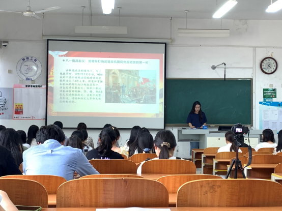 本次活动的第二位主讲人仲昭燕同志向我们讲述了党领导打响武装反抗国民党反动派的第一枪和党创建的第一个农村革命根据地。在第一个部分,仲昭燕同志介绍道:“八一南昌起义打响了武装反抗国民党反动派的第一枪”。八一南昌起义,竖起了一面鲜红的革命武装斗争旗帜,宣告了中国共产党把中国革命进行到底的坚定立场,标志着中国共产党独立地创造革命军队和领导革命战争的开始。随后,仲昭燕同志又向大家介绍了第一个农村革命根据地——井冈山革命根据地,开启了马克思主义基本原理同中国具体实际相结合的伟大进程,实现了中国革命的中心工作从城市到农村的战略转移,成为中国革命走上建立农村根据地、以农村包围城市、最后夺取全国胜利道路的光辉起点。