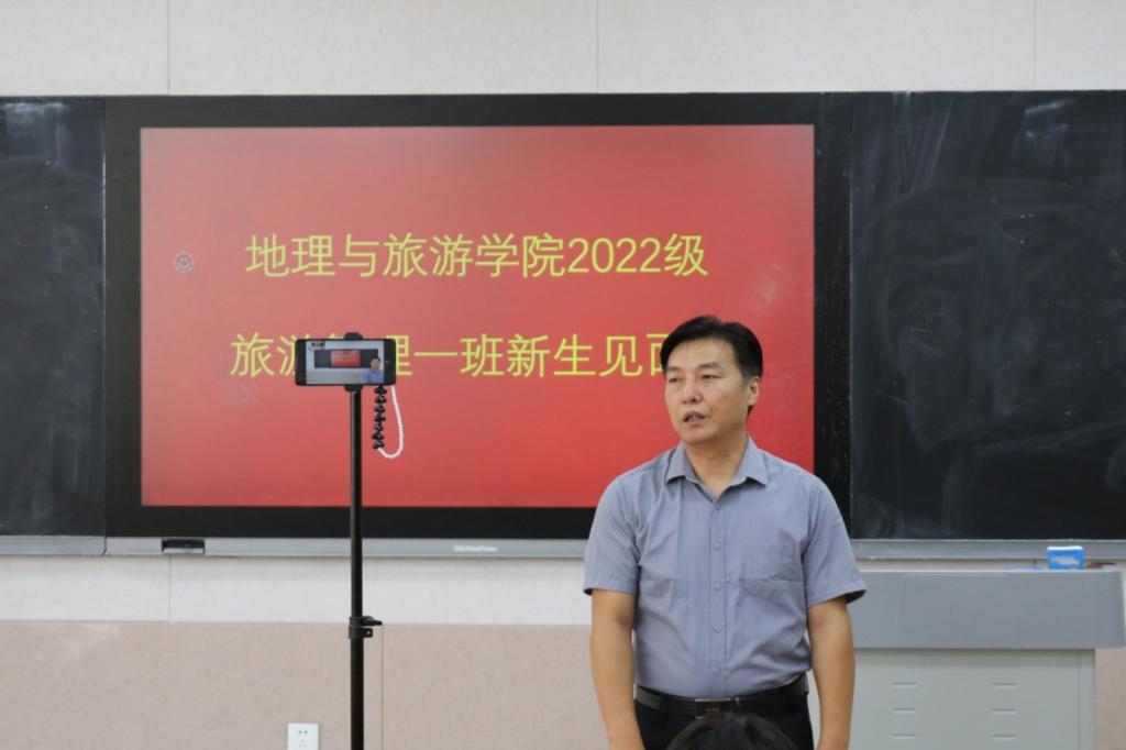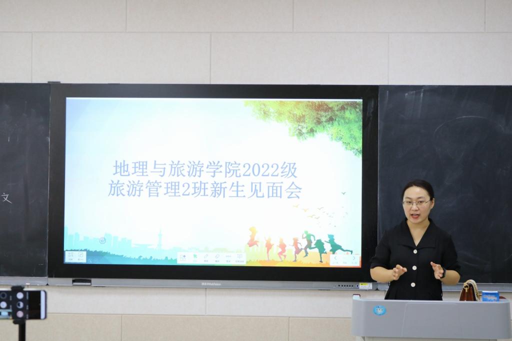 见面会上,刘伟依次向各班同学介绍了各班的班主任,详细介绍了班主任的职位、学位、毕业学校等,希望同学们在学习和学术方面多向班主任请教,在生活方面多和辅导员沟通,同学之间要多加交流,建立良好的关系,度过美好的大学生活。会上,各位班主任与同学们在融洽欢快的氛围中依次进行自我介绍,部分同学进行了才艺表演。因疫情无法线下报到的同学采取线上直播的方式参与本次见面会。见面会结束后,各班在班代的组织下进行游园活动。各班辅导员助理向新生详细介绍校园环境和路线。