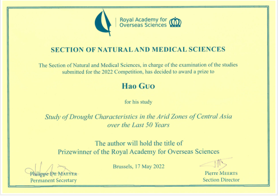 2022年10月20日,比利时皇家海外科学院举办了盛大的年度学术竞赛颁奖活动。我校郭浩博士获比利时皇家海外科学院自然科学领域2022年度学术奖。