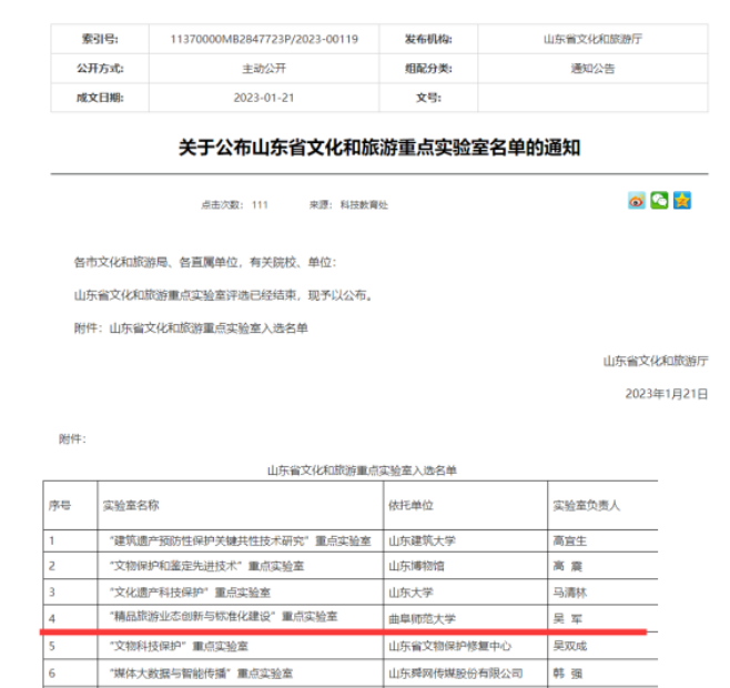近日,山东省文化和旅游厅公布山东省文化和旅游重点实验室名单,麻豆视频