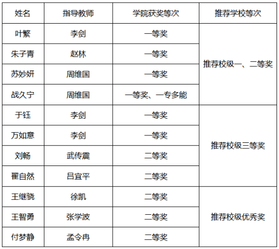 获奖名单(同一等级按照选手姓氏笔画排序)
