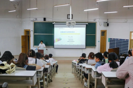 于E101举办实验室安全培训会。活动由学院党委书记苏占兵、重点建设办公室主任李宝富主讲,学院2022级全体学生参加培训。