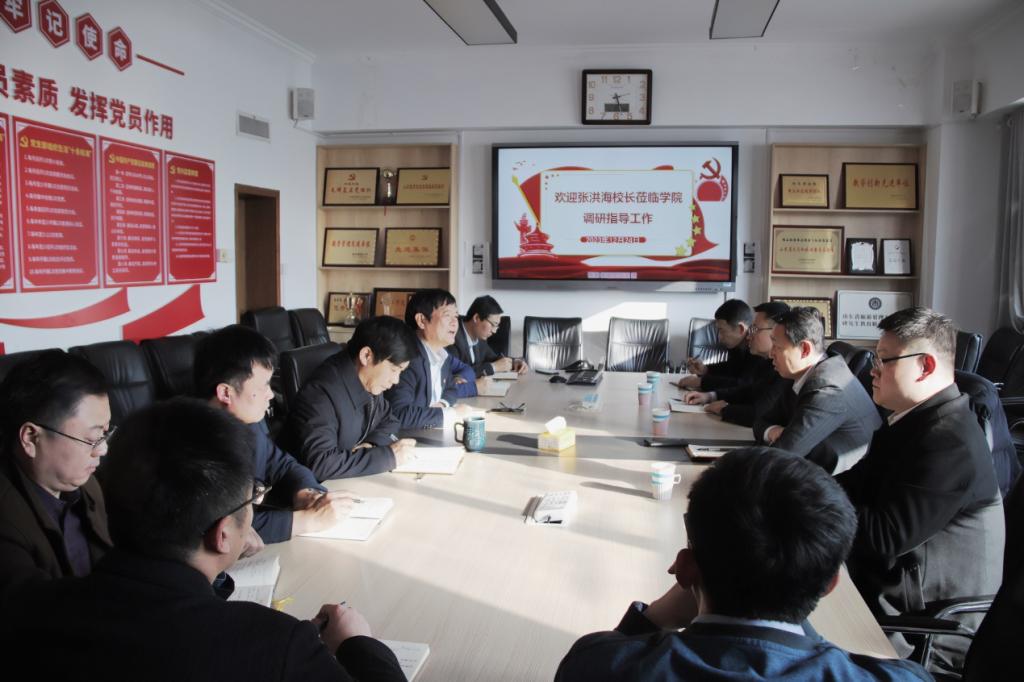 张校长首先肯定了学院取得的各项成绩,对学院发展过程中面临的难点和重点工作进行了多方面的指导,并对学院工作提出了3点要求:一是要以本科教育教学思想大讨论为契机,把准制约教学质量提升的瓶颈,深化教育教学改革,不断提高人才培养质量,进一步全面落实立德树人根本任务;二是要进一步凝练学科特色,聚焦重点方向,着力打造国内一流、国际先进的标志性成果;三是要立足长远、科学谋划,进一步加强师资队伍,尤其是高层次人才队伍建设。