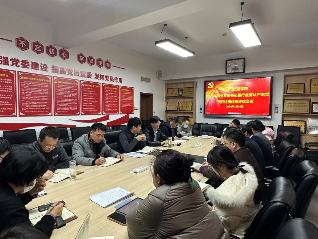 为深入学习贯彻习近平新时代中国特色社会主义思想和党的二十大精神,推动党支部书记履行全面从严治党责任和抓基层党建“第一责任人”的职责,根据学校党委工作部署,2024年1月10日,学院在2401会议室召开2023年度党支部书记抓基层党建工作述职评议会和履行全面从严治党责任述责述廉评议会。学院党委委员出席、各党支部书记参加,日照市政协委员李宝富、团委书记李梅列席会议。党委书记苏占兵主持会议并讲话。