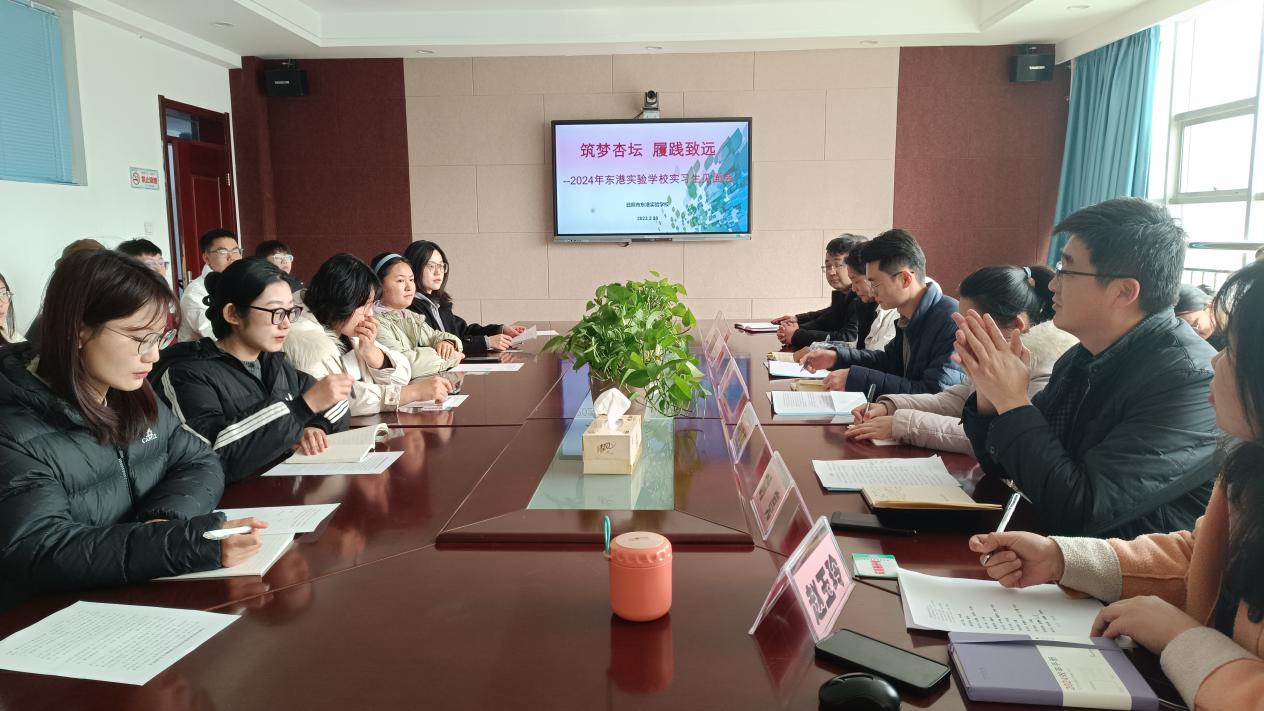 东港实验学校校长王瑞芹,副校长时亮,教导处赵玉玲和地理教师代表欢迎麻豆视频