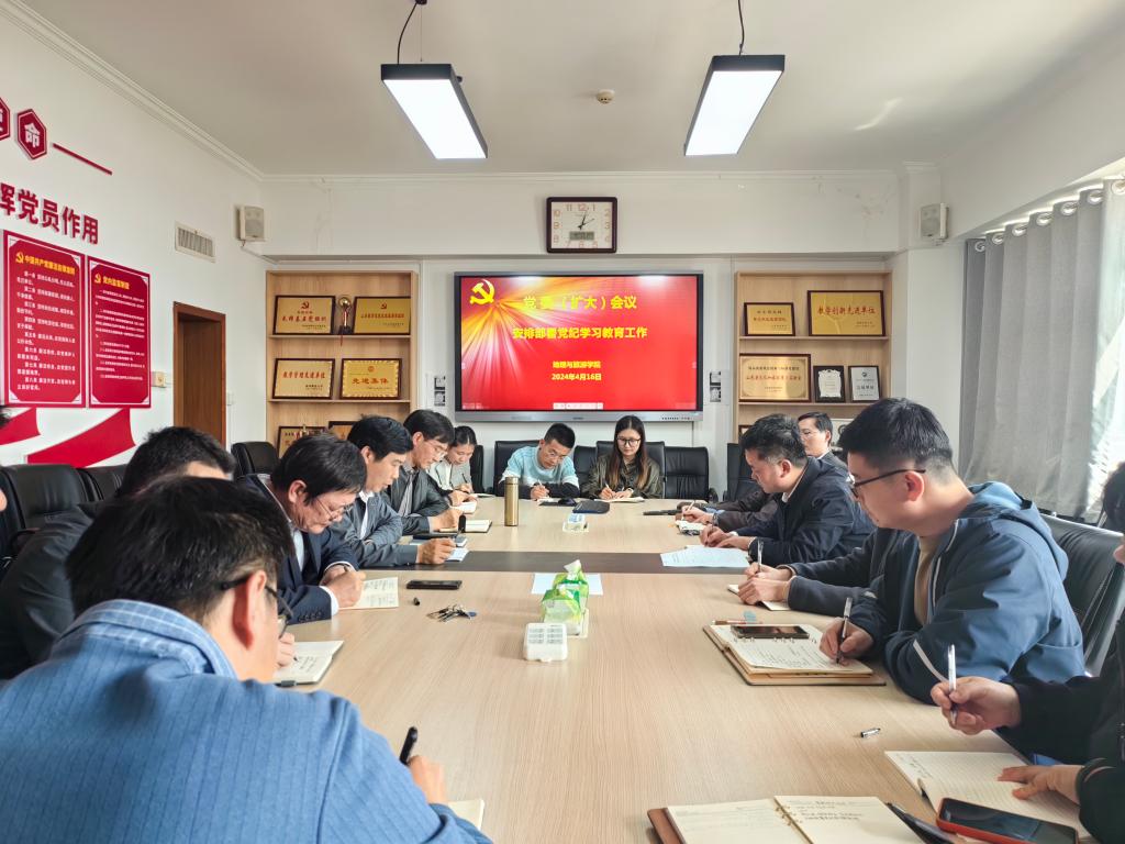 4月16日下午,学院党委在办公楼2401会议室召开扩大会议,学习传达中央、省委、学校党委关于党纪学习教育的要求,研究审议学院党委《关于开展党纪学习教育的工作方案》,启动部署学院党纪学习教育工作。学院党委委员,重点建设办公室主任、各党支部书记参加会议。苏占兵主持会议。
