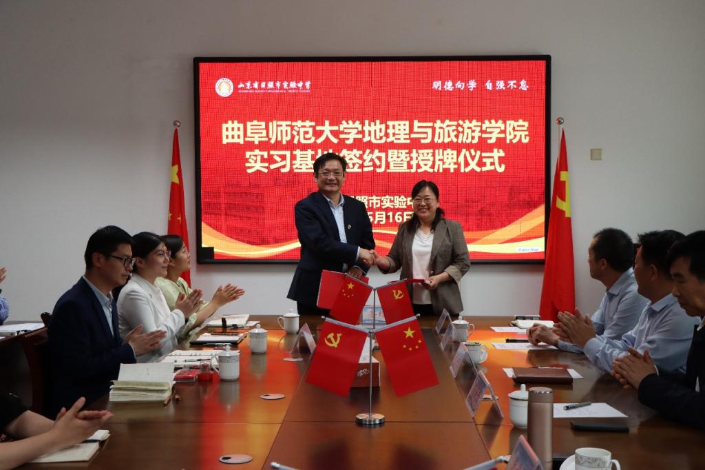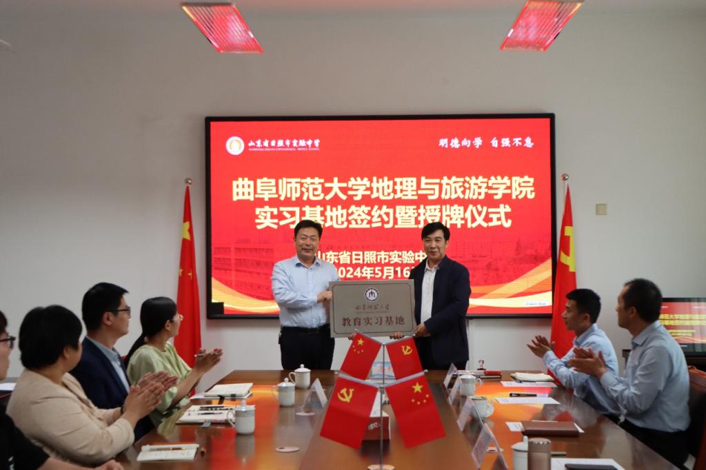 党委书记苏占兵、院长张全景一行前往日照市实验中学签订教育实习基地协议并授牌。日照市实验中学党总支书记尹力群、校长许崇梅、东港区地理教研员孙兆志、各位实习指导老师及实习学生参加活动。