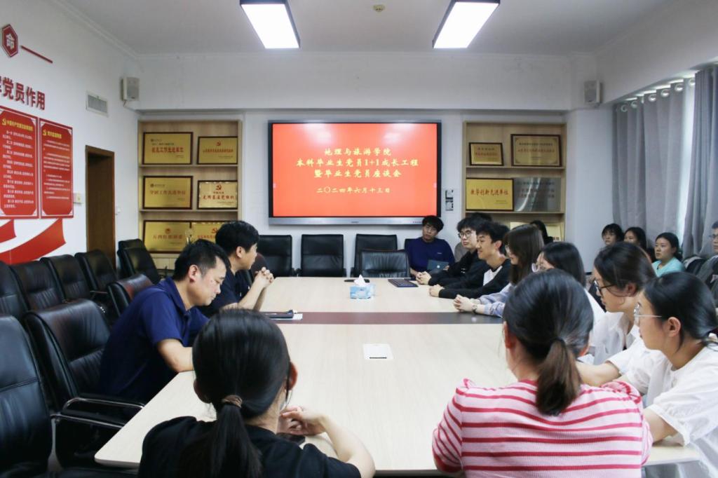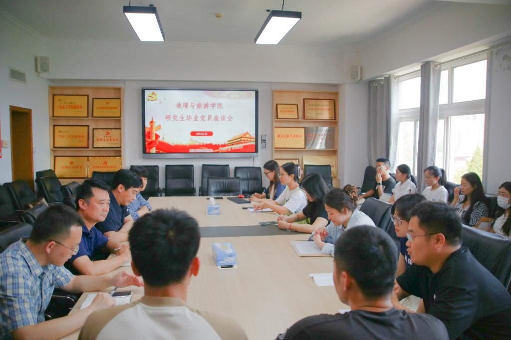组织召开2024届研究生、本科生毕业党员座谈会。学院党委书记苏占兵主持,学院党委副书记刘伟、副院长于伟、辅导员赵岩以及全体毕业生党员参加。