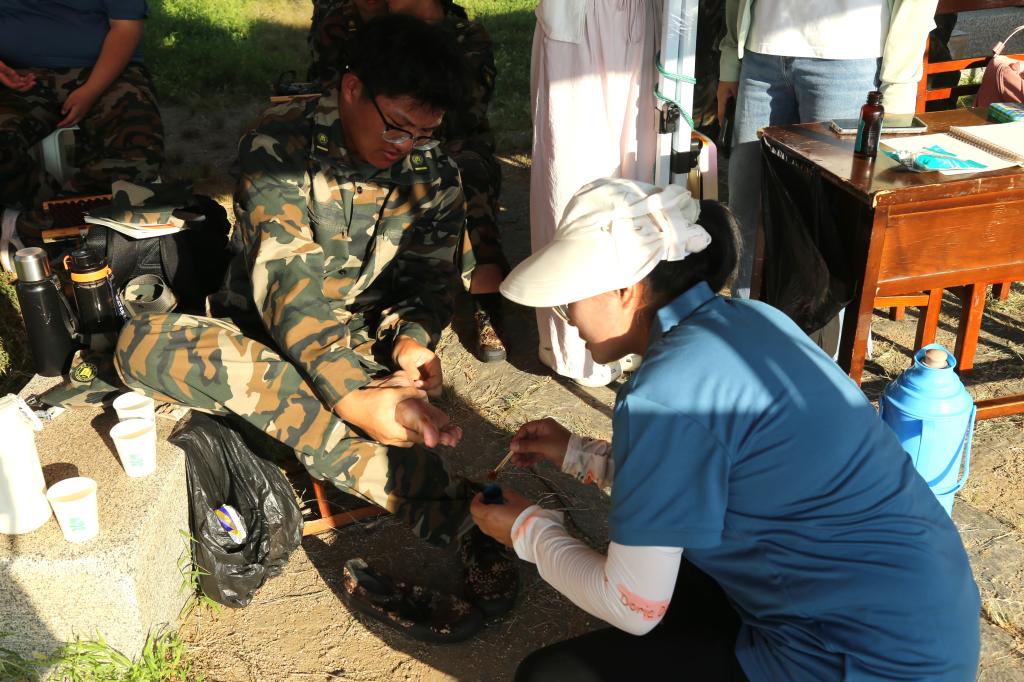 辅导员公惟莹为受伤同学擦药