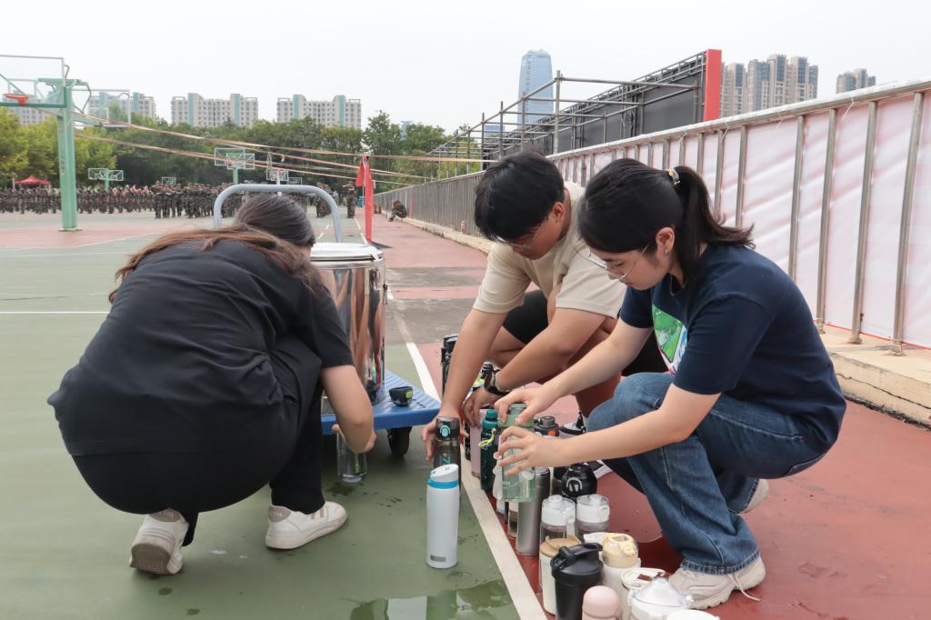 学生会工作人员帮助同学们接水