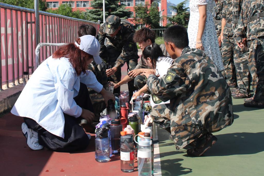 同学们进行内务整理的练习