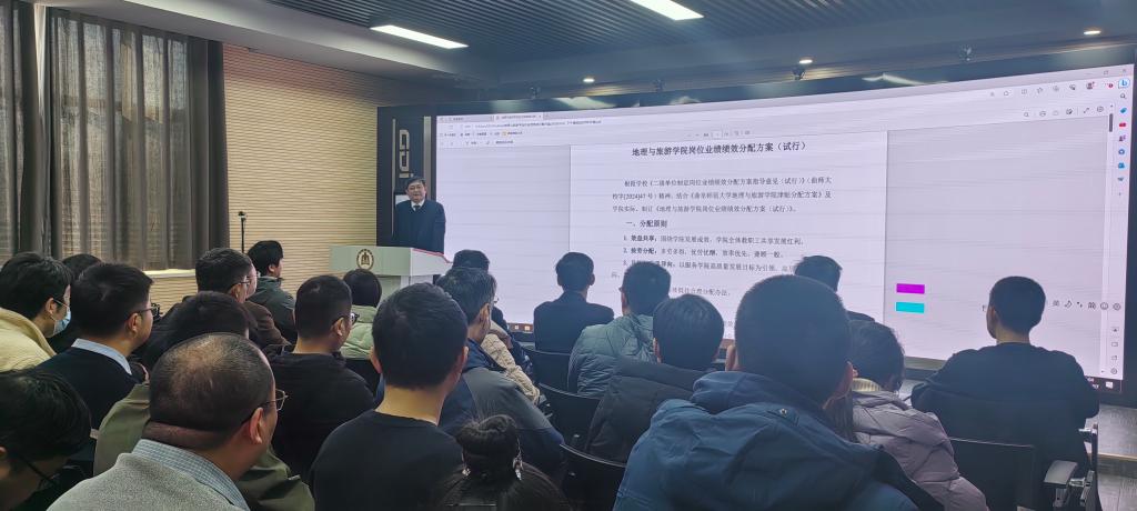 院长张全景对学院岗位业绩绩效分配原则及方案进行了逐条说明和解读,对调研反馈的意见进行了解释。