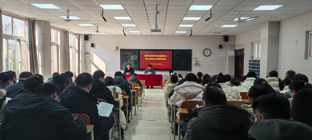 张全景同志在报告中指出,2024年,全院师生认真学习贯彻党的二十大和二十届二中、三中全会精神,认真落实学校党委的决策部署,积蓄力量、继往开来,开拓创新、拼搏奉献,持之以恒立地弘文,凝心聚力奋发图强,较好完成了各项任务,取得了可喜成绩。一是党建领航学院发展。学院党委全面加强党的建设,牢牢把握意识形态领导权,扎实开展党纪学习教育,以“全面从严治党示范学院”“课程思政示范学院”建设为契机,以“党政共同负责制”运行机制为统领,以党建和业务工作深度融合为主线,以“理论联学、阵地联享、业务联研、发展联动、活动联办构筑党建共同体”为抓手,党建引领高质量发展成效显著。二是专业建设成效显著。坚持一流专业任务导向,较好完成了三个本科专业人才培养方案修订,圆满完成了地理科学师范专业教育部二级认证专家进校考查;3个专业全部上榜软科2024年中国大学专业排名,其中地理科学和旅游管理专业再获“B+”评级,土地资源管理专业获得B评级。获批山东省一流本科课程1门,推荐参评国家级一流本科课程2门;获批山东省教改课题1项、课程思政示范项目1项,联合获批山东省普通本科高校重点领域教学改革试点项目1项;获得学校教学成果奖特等奖1项、一等奖3项,教师教学创新大赛一等奖3项、二等奖1项。三是学科建设聚力推进。锚定地理学一级学科博士学位授权点目标,以申报条件和要求为引领,强化自然地理学、人文地理学、地图与地理信息科学、自然资源调查与国土空间规划学四个方向的学科特色和队伍建设,全方位提升学科影响力和竞争力;全员参与,分工协作,认真开展地理学、旅游管理、学科教学(地理)、职业技术教育(旅游服务)学位点审核评估工作。四是师资队伍进一步优化。学院现有教职工93人,其中专任教师80人,本科生生师比17.1:1,青年教师快速成长,朝气蓬勃、担当作为,在教学科研和社会服务中积极进取,成绩显著、引人瞩目,这是学院向好向强发展的强大基础和动力源泉。师资结构进一步优化,2024年新晋副教授5人,当前教授13人、副教授34人,专任教师中博士生导师8人、72人具有博士学位、19人具有海外学习经历,博士占比远超学校平均比例。学界和社会影响进一步提升,6位教师入选“2024中国知网高被引学者TOP1%”、13位教师入选“2024中国知网高被引学者TOP5%”,入选人数占全校总入选人数的22.7%;1人获评山东省教学名师,1人担任中国地理学会理事,1人担任山东省智库专家,在各类学术组织任职的教师近20人。五是平台建设持续发力。与比利时根特大学、中国科学院新疆生地所联合共建、成功签约“中比地理信息联合实验室”;获批山东省普通高等学校地理科学实验教学示范中心、山东省普通高等学校示范性实习(实训)基地(国土利用与信息化产教融合示范性基地)、山东省普通高等学校示范性基层教学组织(麻豆视频