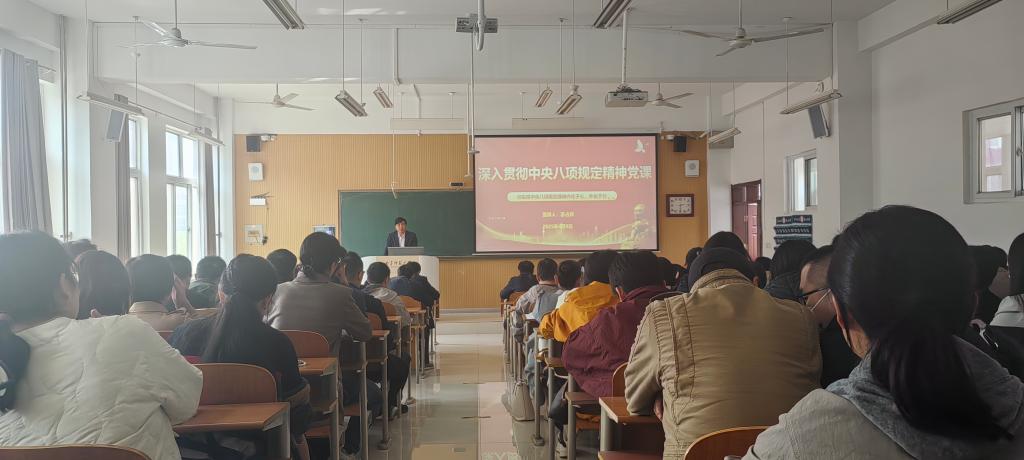 4月9日下午,学院在S楼314教室召开政治理论学习会议,全体教工参加学习。党委书记苏占兵以“切实将中央八项规定精神内化于心、外化于行”为主题,为全体教工讲授了一堂深刻而生动的党课。