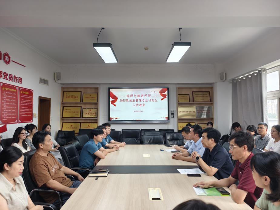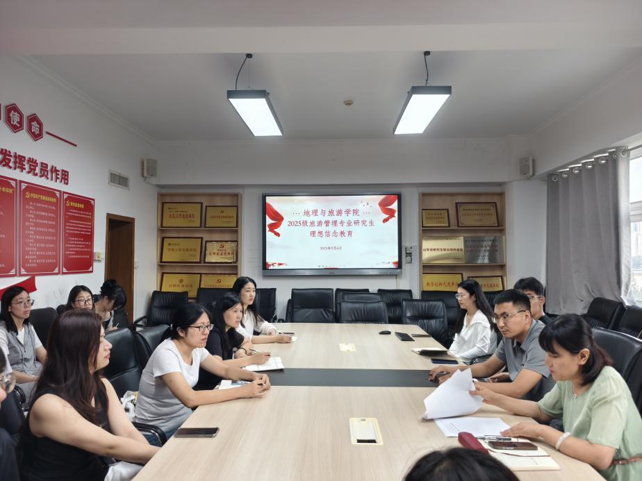 于会馆2401会议室组织召开旅游管理专业研究生主题教育座谈会。本次会议围绕理想信念与爱校荣校教育、身心健康教育、安全教育三大主题展开。学院党委书记苏占兵、副书记刘伟、副院长吴军、副院长于伟、研究生辅导员赵岩及2025级旅游管理专业全体研究生参会。