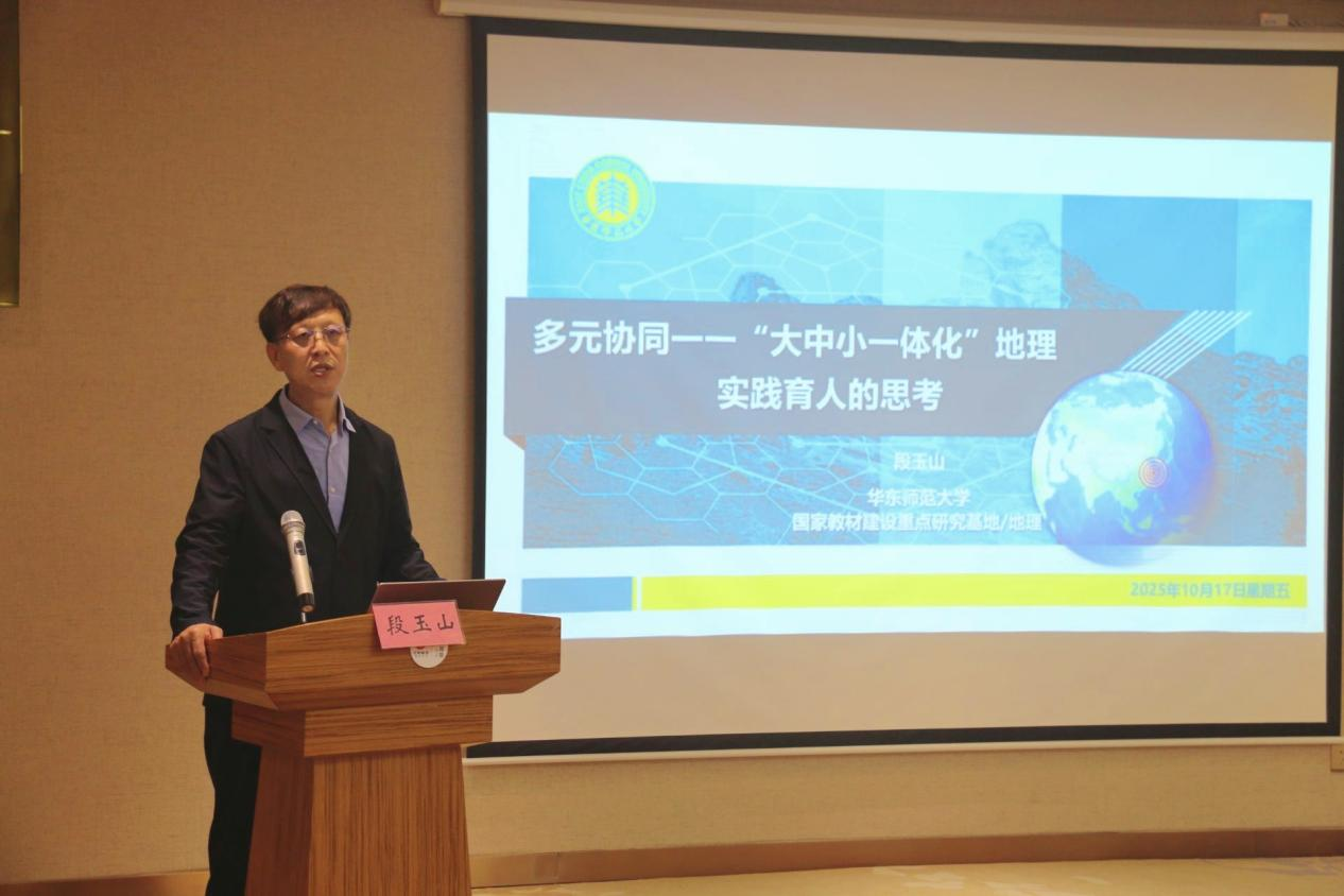 建院40周年,2025年10月17日,我国地理教育领域的权威专家、中小学地理国家教材建设重点研究基地主任、中国教育学会地理教学专业委员会理事长、《地理教学》杂志主编、华东师范大学地理科学学院段玉山教授做客“经纬讲堂·高端论坛”,为学院师生作了题为《多元协同——“大中小一体化”地理实践育人的思考》的精彩学术报告。报告会由麻豆视频