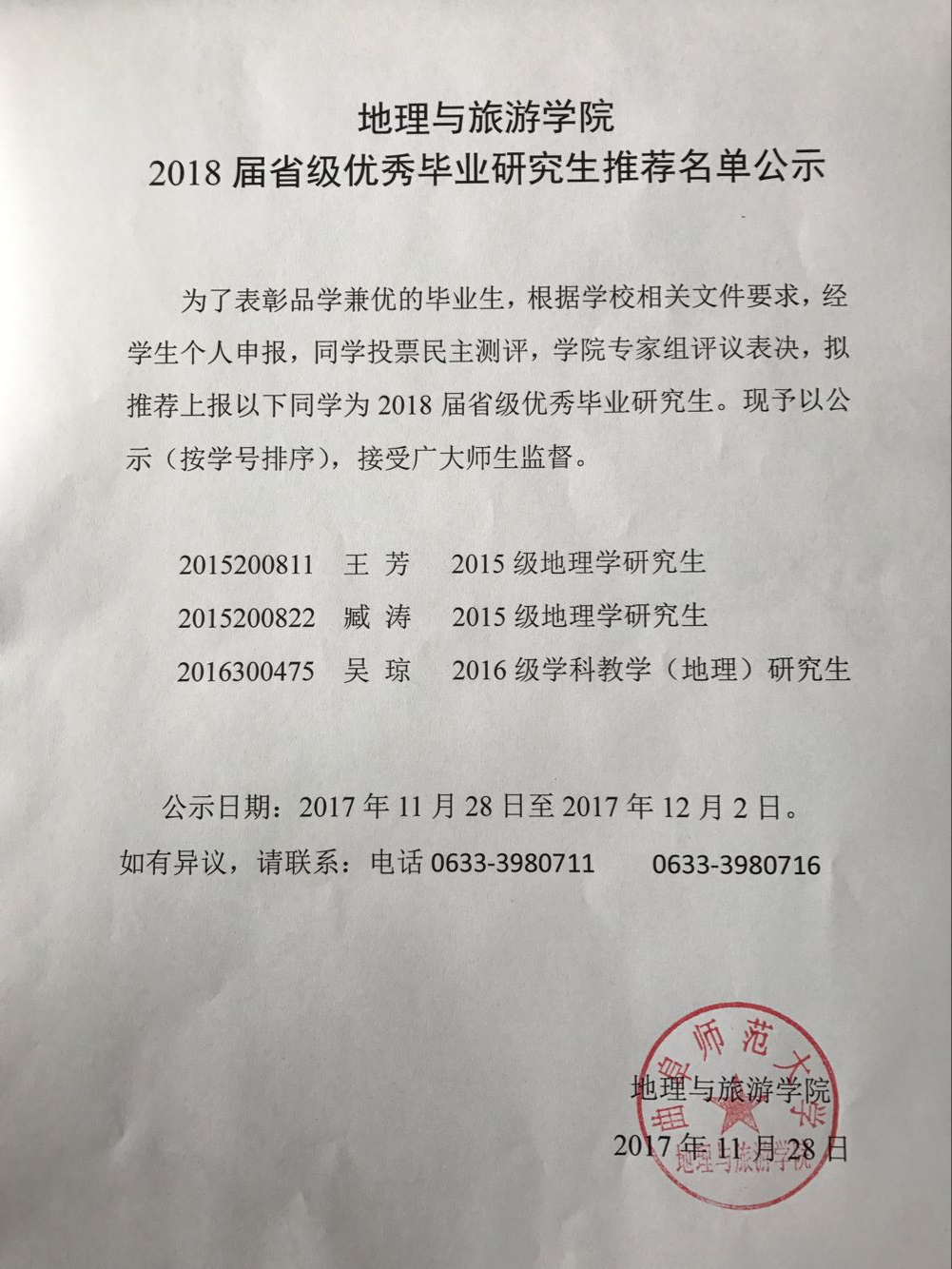 麻豆视频 2018届省级优秀毕业研究生推荐名单公示