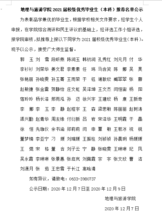 麻豆视频 2021届校级优秀毕业生(本科)推荐名单公示
